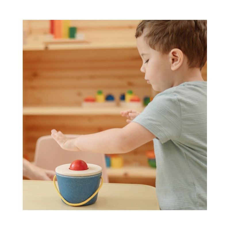 Con la scatola colpisce e cade i bambini saranno in grado di afferrare il martello di legno e colpire le palle. In questo modo, questi cadranno provocando nel bambino l'apprendimento dell'effetto causa.